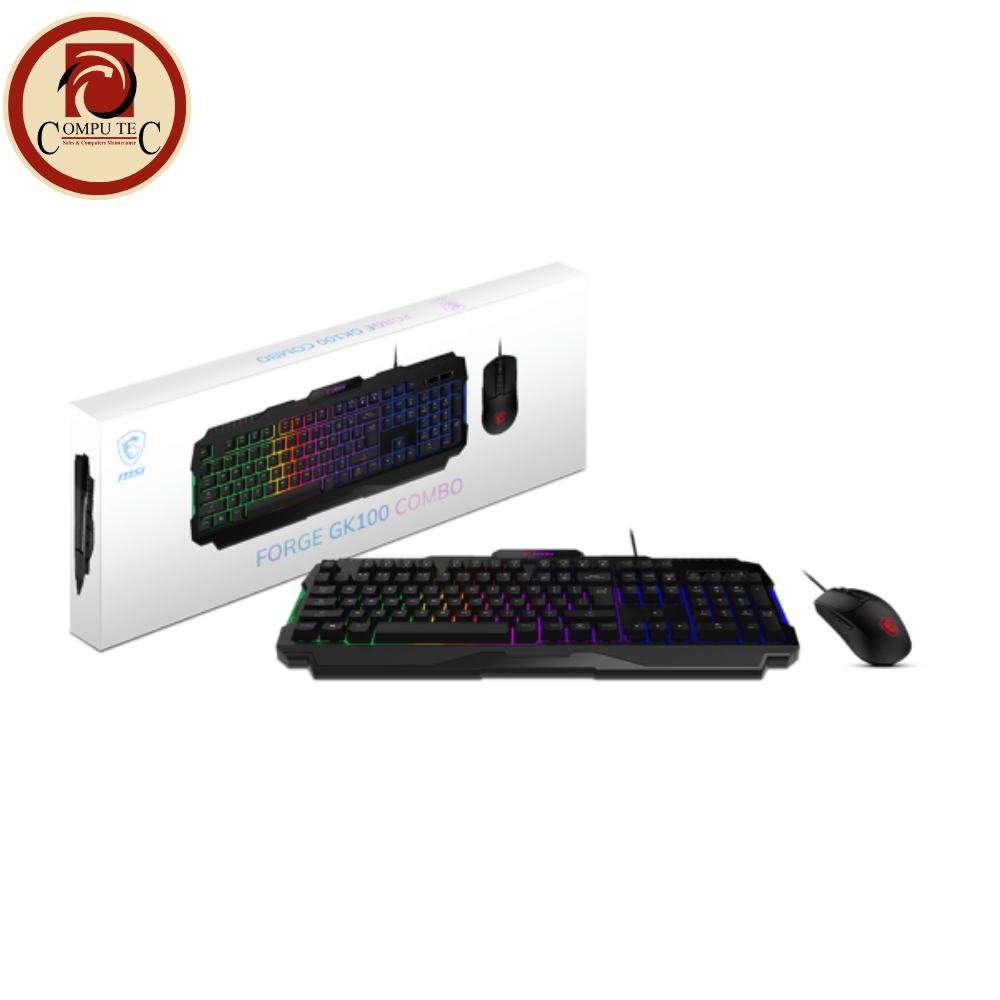 “The MSI FORGE GK100 COMBO is a robust and stylish two-piece set designed to elevate your gaming and creative experience. The keyboard utilizes quiet yet responsive Membrane Switches rated for 10 million keystrokes, offering a soft typing feel while maintaining excellent responsiveness. Critical for fast-paced action, the keyboard includes 19-key anti-ghosting functionality, ensuring simultaneous key presses are accurately registered.