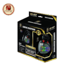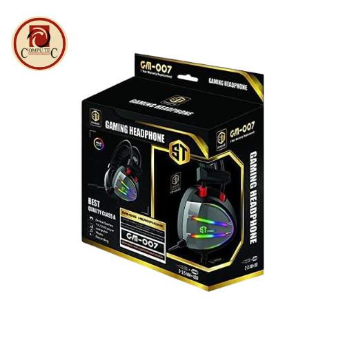 The Standard GM-007 Gaming Headphone is a class A headset built to provide an immersive and comfortable audio experience for serious gamers. It is equipped with speaker drivers that deliver powerful stereo sound, deep bass, and acoustic positioning precision, essential for competitive play. Designed for maximum comfort, the headset features a durable leather headband and soft, cushioned ear cups suitable for extended gaming sessions. Communication is handled by a highly sensitive (), flexible, and robust omnidirectional microphone designed for clear voice transmission. The headset’s aesthetic appeal is boosted by dynamic RGB LED lighting effects, powered via the separate USB plug. With a long cable and versatile connectivity ( + USB), the GM-007 is compatible with a wide range of devices, including PCs, gaming consoles, and mobile phones (with the included Y-splitter adapter).