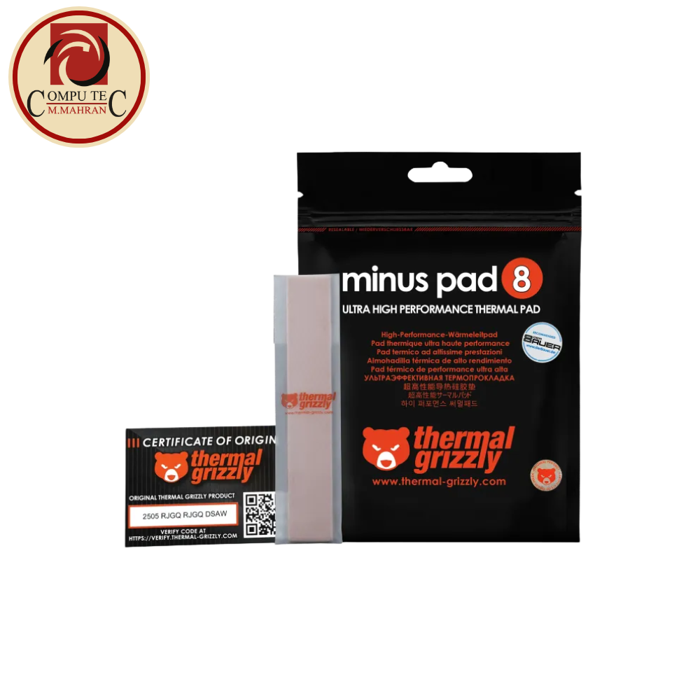 The Thermal Grizzly Minus Pad 8 offers a highly effective, long-lasting thermal solution for components that require padding rather than paste, such as MOSFETs, VRAM modules, and chipsets. This specific product package contains two individual pads, each measuring 120mm x 20mm with a thickness of 1.0mm, providing excellent coverage for custom cutting. With a superior thermal conductivity rating of 8.0 Watts per meter-Kelvin (W/mK), the pads rapidly conduct heat away from electronic parts. Their unique, flexible silicone-based compound allows them to adapt perfectly to microscopic surface irregularities and fill gaps easily, creating optimal contact. The Minus Pad 8 is highly elastic, non-curing, and completely non-electrically conductive, ensuring safe installation and maintaining stable performance across a vast operational temperature range from