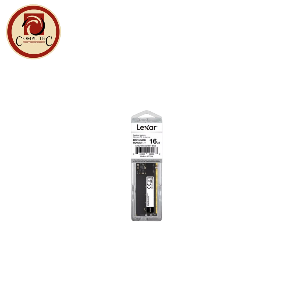 The Lexar 16GB DDR5 5600MHz Desktop RAM is a high-performance memory module designed for modern desktops that require ultra-fast speed, high bandwidth, and reliable performance. Built with DDR5 technology, it offers significantly improved efficiency and data transfer rates compared to DDR4 memory.