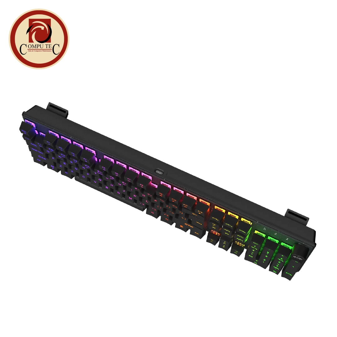 The keyboard features rainbow LED backlighting with multiple lighting modes, giving your gaming setup a vibrant and dynamic look. The lighting effects can be adjusted directly on the keyboard or through software for more customization options.