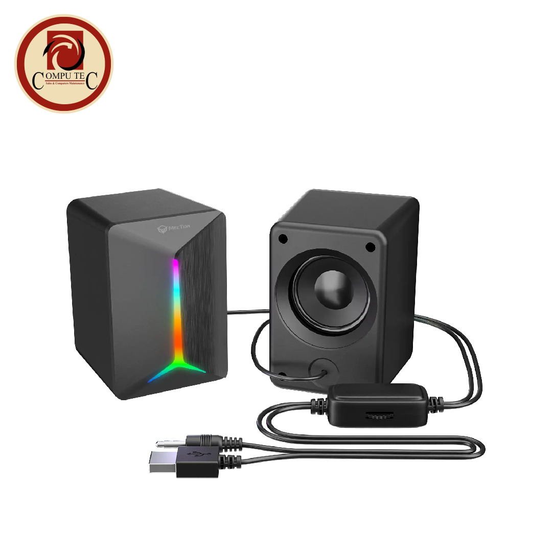 The Meetion SP2011 USB Stereo Speakers are compact gaming desktop speakers designed to deliver clear stereo sound and stylish lighting effects. Featuring a 2.0 channel speaker system, the left and right speakers provide balanced audio suitable for music, gaming, movies, and everyday computer use.