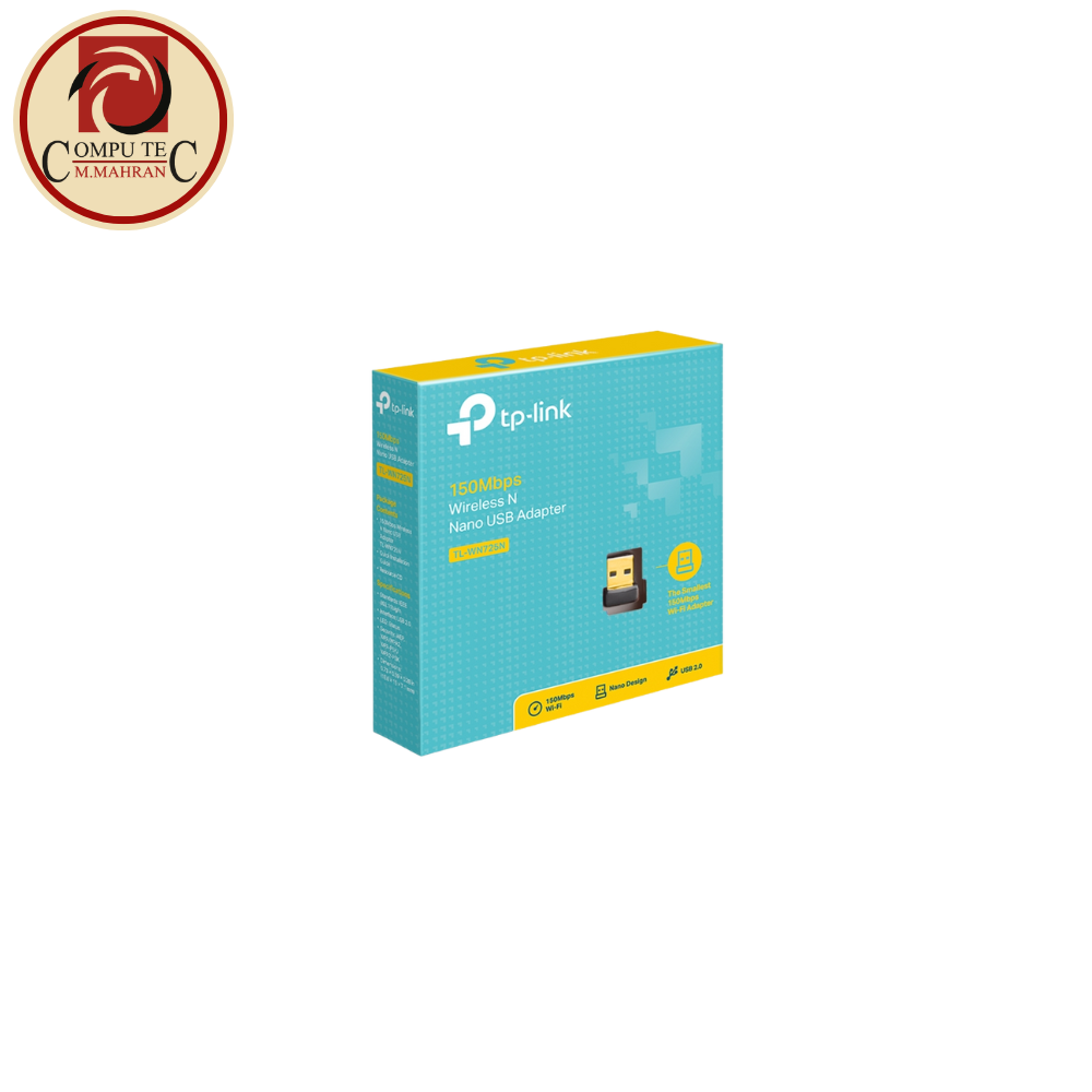 The TP-Link TL-WN725N 150Mbps Wireless N Nano USB Adapter is a miniature, high-performance solution for adding reliable WiFi connectivity to any desktop or notebook computer. Its extremely small, Nano Size design allows it to be left plugged into a USB port permanently without obstructing surrounding ports or posing a risk of being broken off. The adapter supports the Wireless N standard and can reach speeds of up to 150Mbps on the 2.4 GHz frequency band.